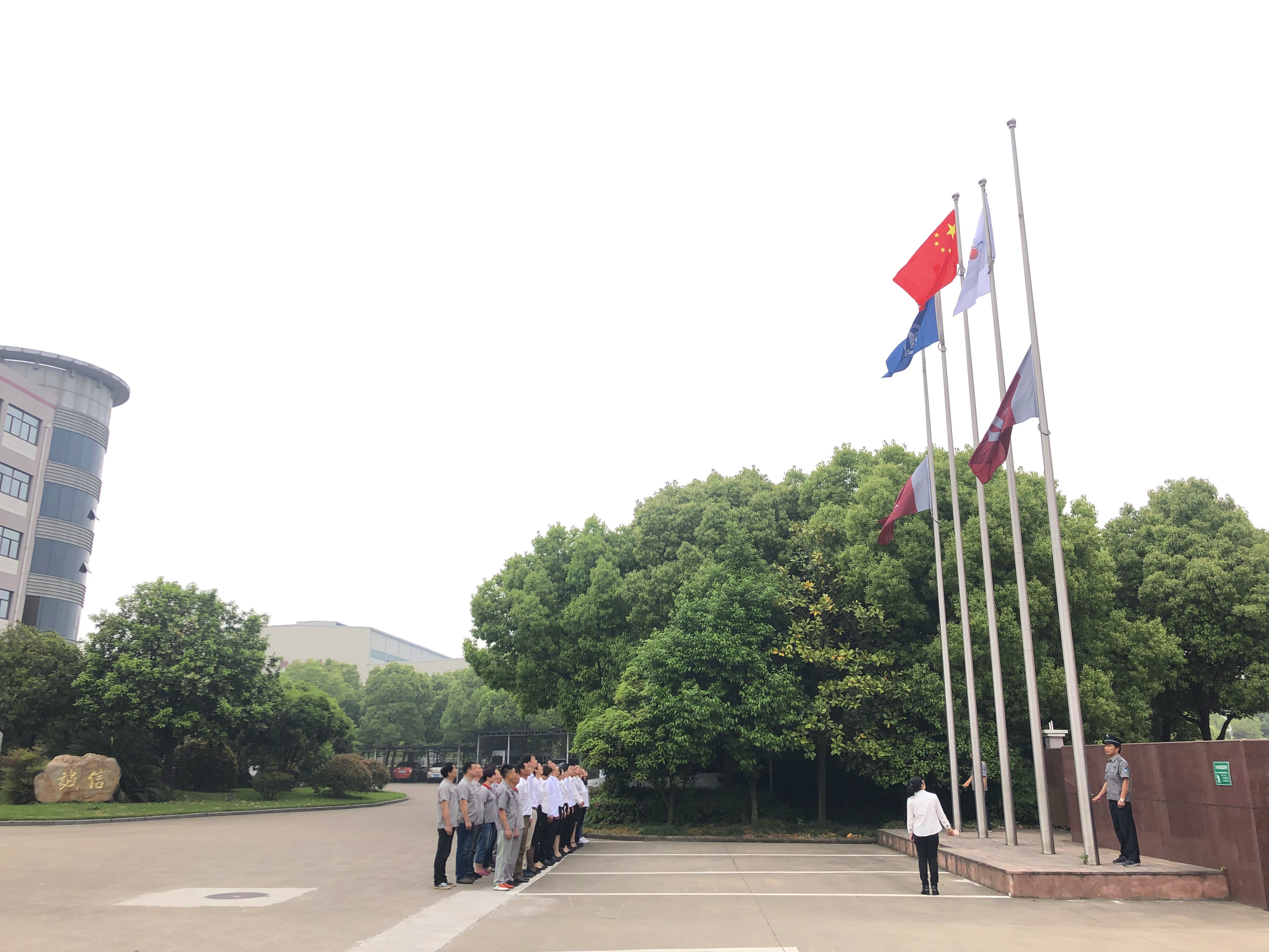 江苏捷诚领导班子、各车间部室负责人、各党支部书记、工会和团委代表、技术中心全体人员参加升旗仪式。当雄壮有力的《义勇军进行曲》响彻整个厂区,全体人员行注目礼,全场弥漫着一种庄严肃穆的气息,鲜艳的五星红旗冉冉升起,激发了全体干部职工不断向上的斗志,点燃了大家强烈的爱国热情。升旗仪式上,公司党委号召全厂职工把爱国之志转化为报效祖国的实际行动,为航天事业发展而奋斗。