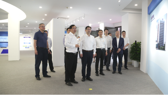 刘著平一行参观了航天通信展厅,详细了解了航天通信发展历程、业务板块与产业发展情况。