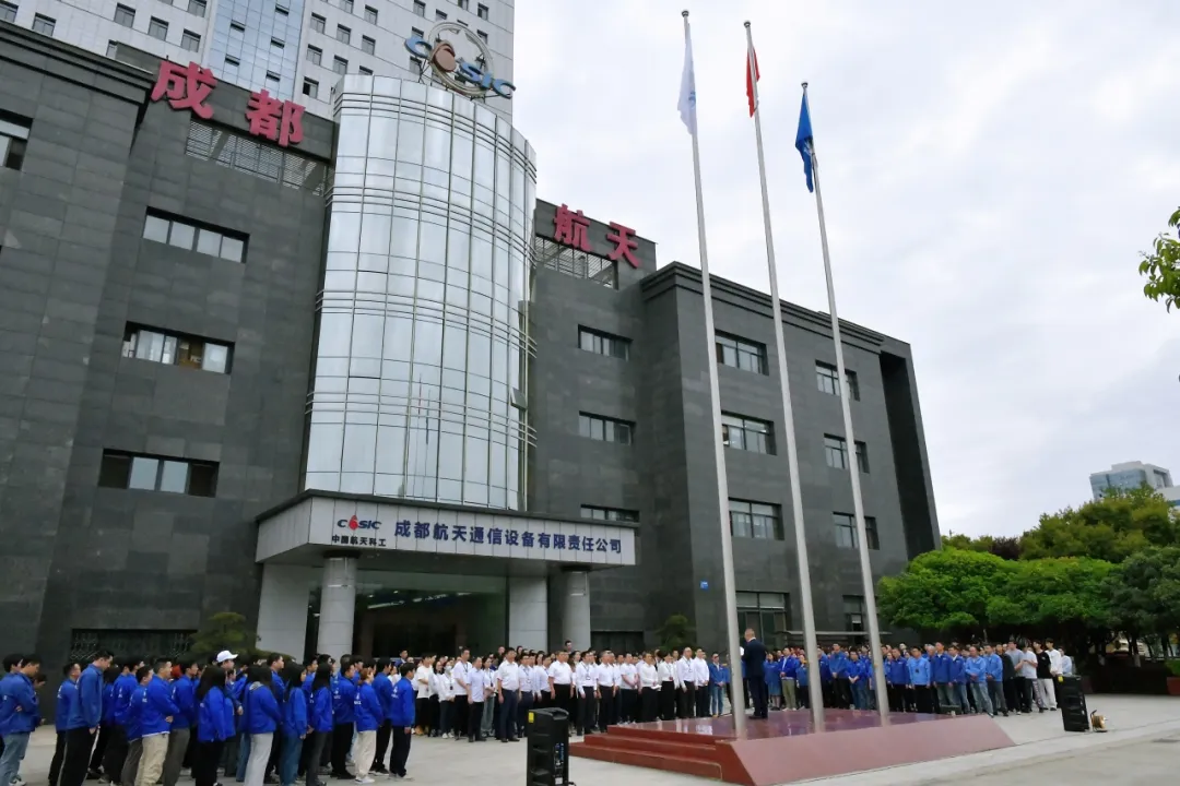 为庆祝第九个“中国航天日”,按照集团公司统一部署,2024年4月24日上午,航天通信本部及所属各单位分别在杭州、成都、沈阳、绵阳、镇江等地举行升旗仪式,共同升起“同一面旗帜”。