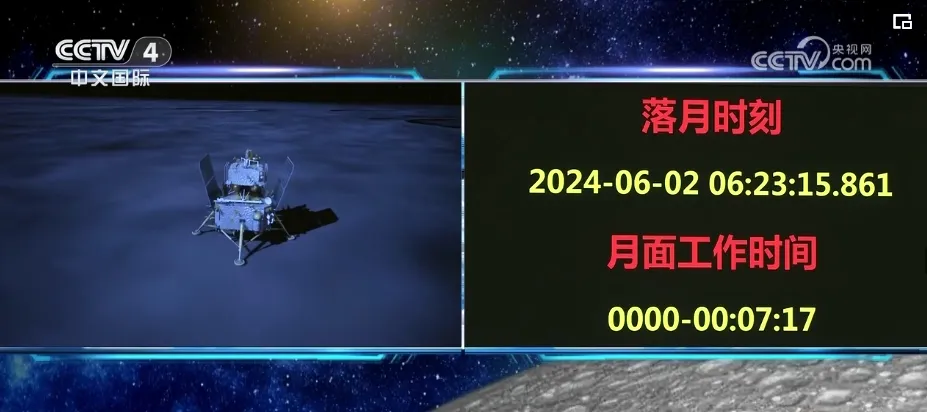 此前,6月2日6时23分,嫦娥六号着陆器和上升器组合体在鹊桥二号中继星支持下成功着陆在月球背面南极-艾特肯盆地预选着陆区。