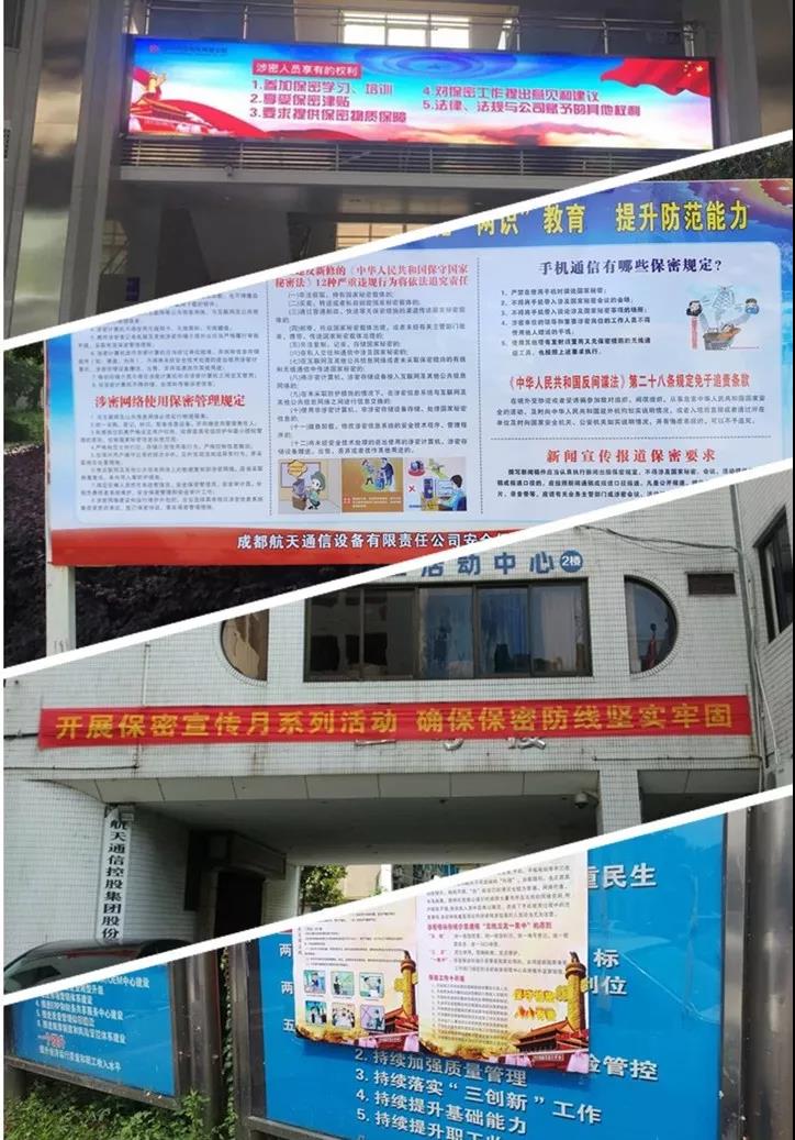 公司各单位通过内部报刊杂志、悬挂张贴警示标语横幅、电子显示屏、OA平台等多种媒体,播放保密法规条例、案例警示,营造宣传月良好的活动氛围。
