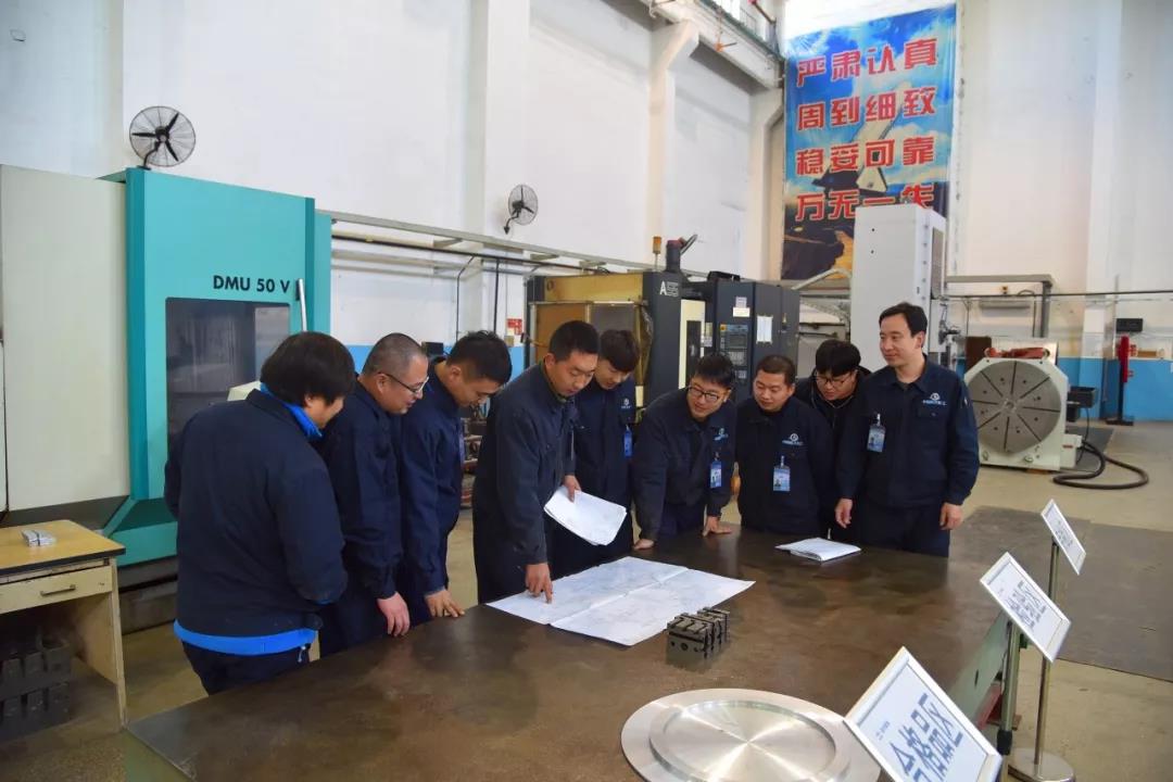 与辽宁沈阳一降再降的气温相反的,是数控班全体员工日益高涨的工作热情。面对紧张的生产形势,数控班班长梁涛组织本班11名同志成立了专项产品的青年突击队,这支青年突击队由23厂的骨干力量组成,平均年龄27岁,有高级技师2人,技师3人,高级工5人,是一支能打硬仗的年轻队伍。他们每天早来晚走,放弃午休及节假日,一面分析技术难点,设计制作专用夹具和专用刀具;另一方面安排生产计划,把生产节点细化到每天,每岗,每人,无论是装夹准备,建模作图,程序编制,操作加工他们都分工协作,各施所长。几乎每人每天都要工作12个小时以上。数控中心的数控车床和数控镗、铣床更是24小时倒班生产,把工作效率发挥到了极致。
