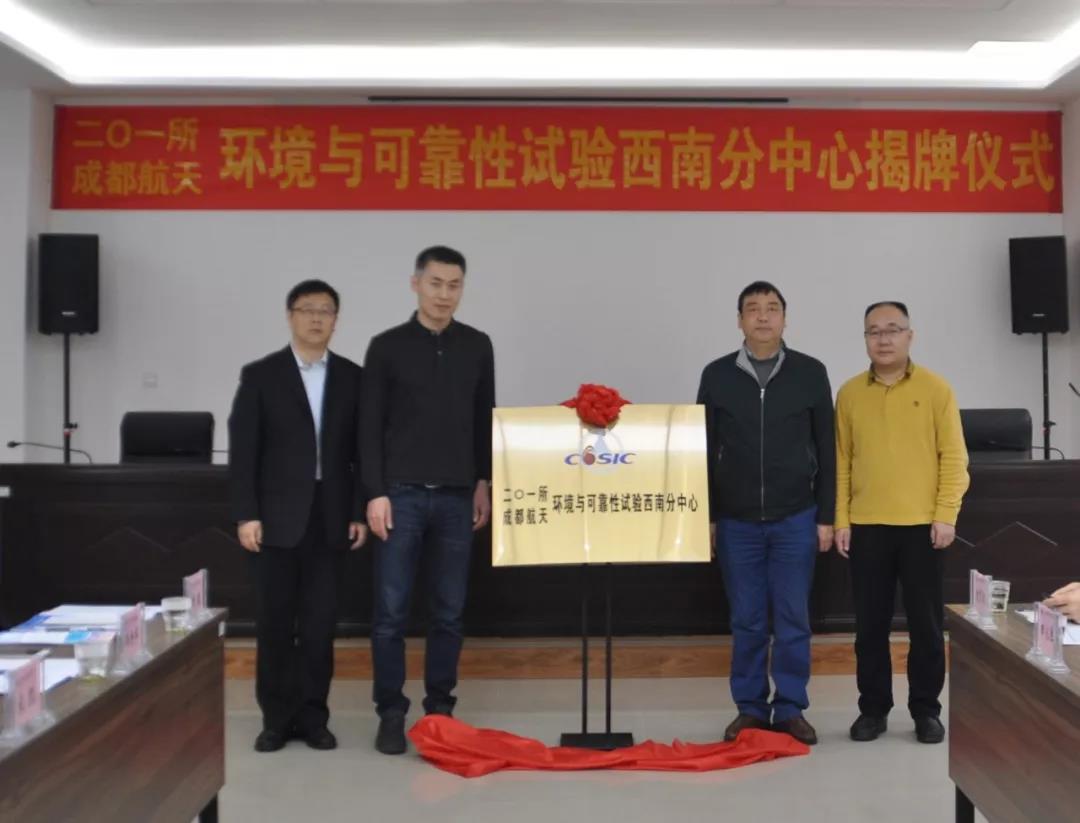 2019年3月16日,航天二〇一所/成都航天环境与可靠性测试西南分中心揭牌仪式在成都航天通信设备有限责任公司隆重举行,四川省军民融合办公室张成华副巡视员、相关军种嘉宾代表、航天科工集团科质部综合质量处处长滕进、航天二院产保部质量总师时国忠等参加了本次仪式。同时受邀出席仪式的还有航天科工通信研究院、凯天电子、四川灵通、天奥技术、四川九洲、电子二十九所、天箭科技等近20家单位。成都航天党委书记、董事长刘厚文、201所徐燕侃所长及双方公司领导和主要部门领导参加了揭牌仪式。揭牌仪式由201所市场营销总监任毅主持。由张成华、滕进、刘厚文、徐燕侃为试验室揭牌。