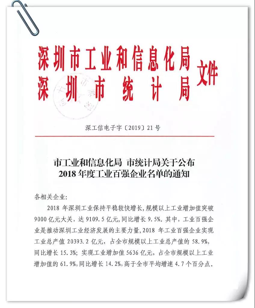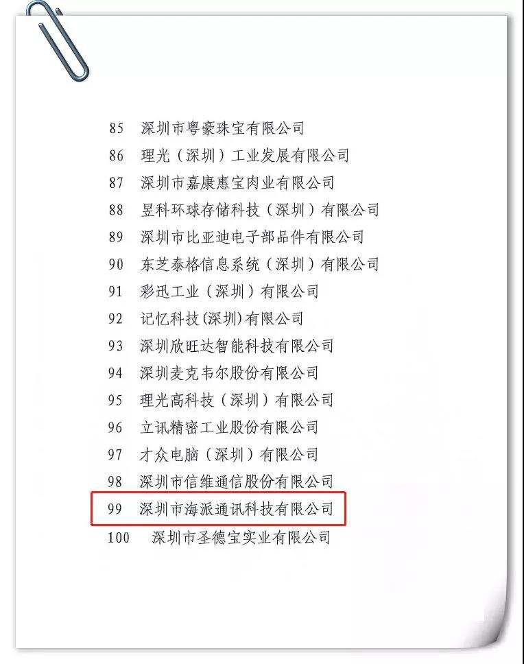 深圳市工业和信息化局、深圳市统计局经过严格的分析统计评选,于近日联合公布了2018年度深圳市工业百强企业,深圳海派得以荣登榜单。