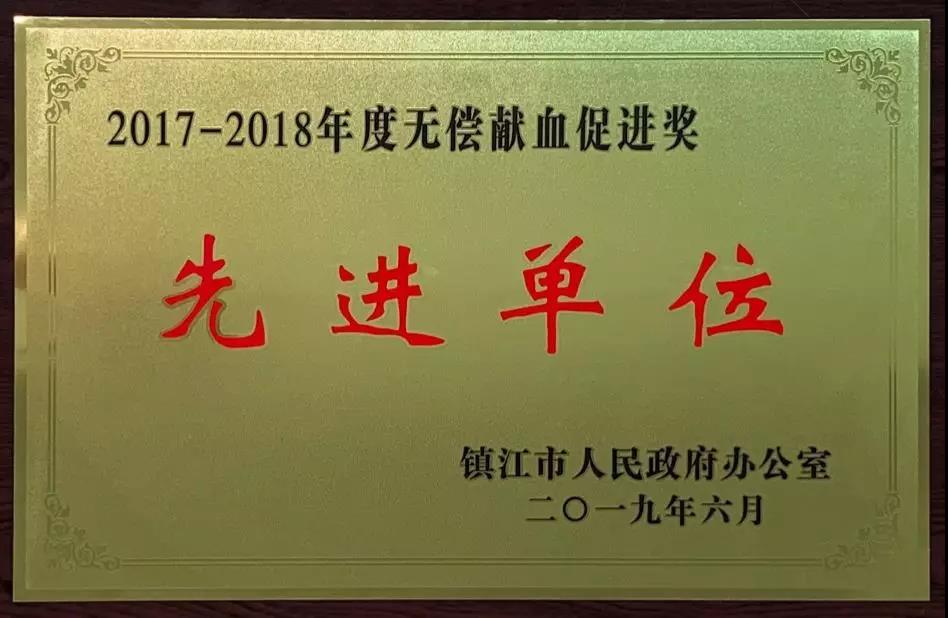 近日,江苏省镇江市人民政府召开了2019年无偿献血工作会议,会议总结了2017-2018年度全市义务献血工作,表彰了2017-2018年度市无偿献血工作先进单位和先进个人。江苏捷诚荣获镇江市2017-2018年度“无偿献血促进奖”先进单位。
