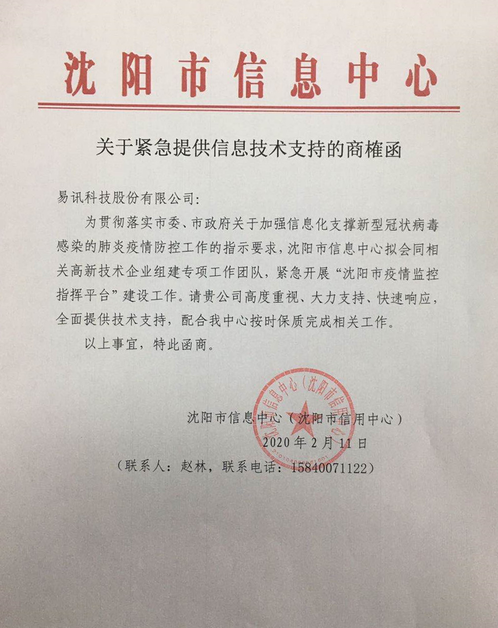 疫情就是命令,防控就是责任。目前,疫情防控工作已到了最关键的攻坚阶段,航天通信所属易讯科技,主动担当,自觉履行社会责任,助力沈阳市政府开展新型冠状病毒引发肺炎疫情防控工作。