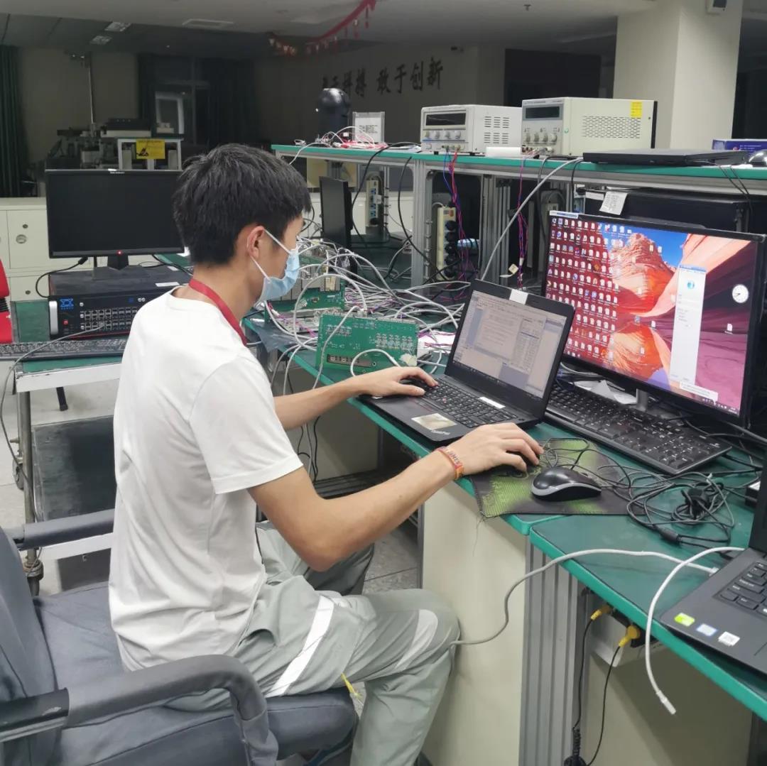 项目组软硬件工程师黄仁果、梁晖、肖霞、刘鹏飞、李孝富等,为了保障项目外出人员产品联试的顺利进行,与现场人员随时保持沟通,全力以赴做好技术支持工作。为了保证系统联试进度不受影响,他们经常以实验室为家,通宵达旦、探索攻关,将联试过程中出现的故障现象在实验室反复推敲,第一时间拿出优化解决方案,为总体单位提供了良好的技术支持与服务,他们用一个又一个电讯号,一行又一行代码书写着无悔青春。