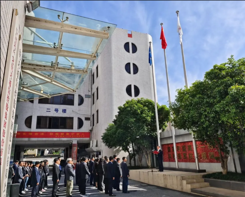 升旗仪式上,张忠荣宣贯了习近平总书记关于航天事业的重要论述,回顾了航天通信发展历史上为航天事业做出的贡献,代表党委向奋战在各条战线的干部职工,致以节日问候和美好祝愿。