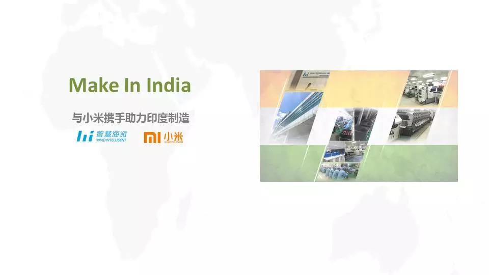 2018年4月9日至11日,小米在印度召开了首届印度供应商大会。小米副总裁张峰,副总裁兼小米印度总经理Manu Kumar Jain,印度商业与工业部部长Suresh Prabhu,印度信息技术部部长Ravi Shankar Prasad等其他印度主要官员,及包括智慧海派在内的全球50多家供应商出席本次大会,就如何与政府合作,在印度市场建立生态链制造系统进行了深入的探讨。
