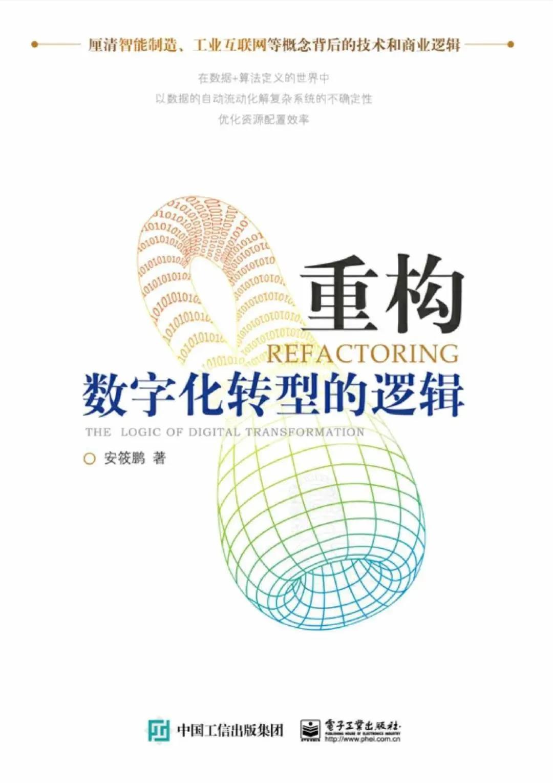 荐书语:最近研读了原工信部电子信息司副司长安筱鹏博士的新作《重构:数字化转型的逻辑》,该书从分析数字化的本质,即以数据的自动流动化解复杂系统的不确定性入手,提出了制造型企业通过以数据驱动为特征、由智能制造和工业互联网引领数字化转型的路径选择。近年来,航天科工集团公司不断强化“新业态体系”建设,要求各级组织加速推进“四化”,实现数字化转型。该书揭示的数字化转型是在互联网开放共享互操作环境下,软件、数据、云计算重新定义价值链、新分工体系和决策系统理念与集团公司“脑仓室站金”的构想与实践不谋而合,同时传统制造转型为智能制造并迈入工业互联网阶段的演进路线设计为企业实施“四化”,推动数字化转型提供了着力点,具有很强的指导作用。