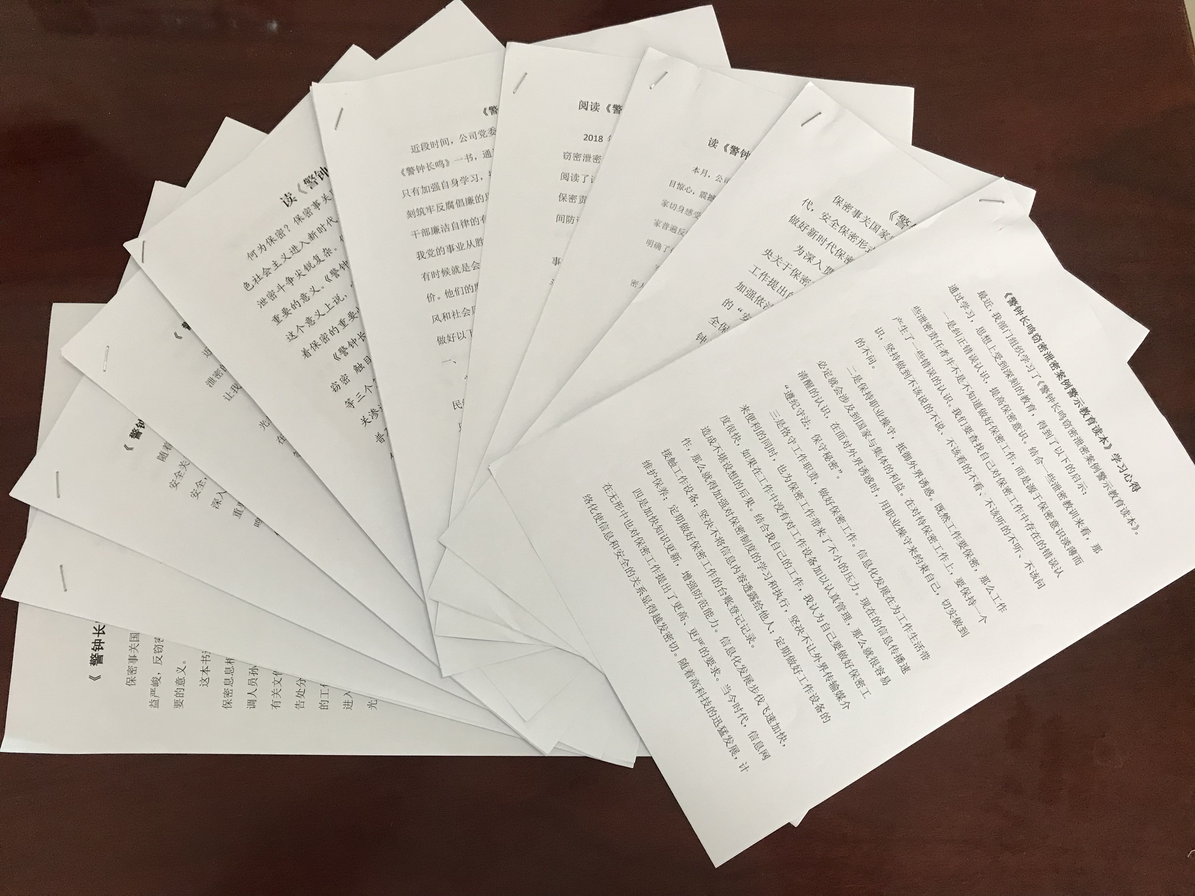 公司组织全体涉密人员关注集团公司天工圆圆和“保密观”微信公众号,在线学习保密常识,同时组织参加微信答题活动,共计1100余人参加答题,通过学习答题提升全员保密综合素质和技能。