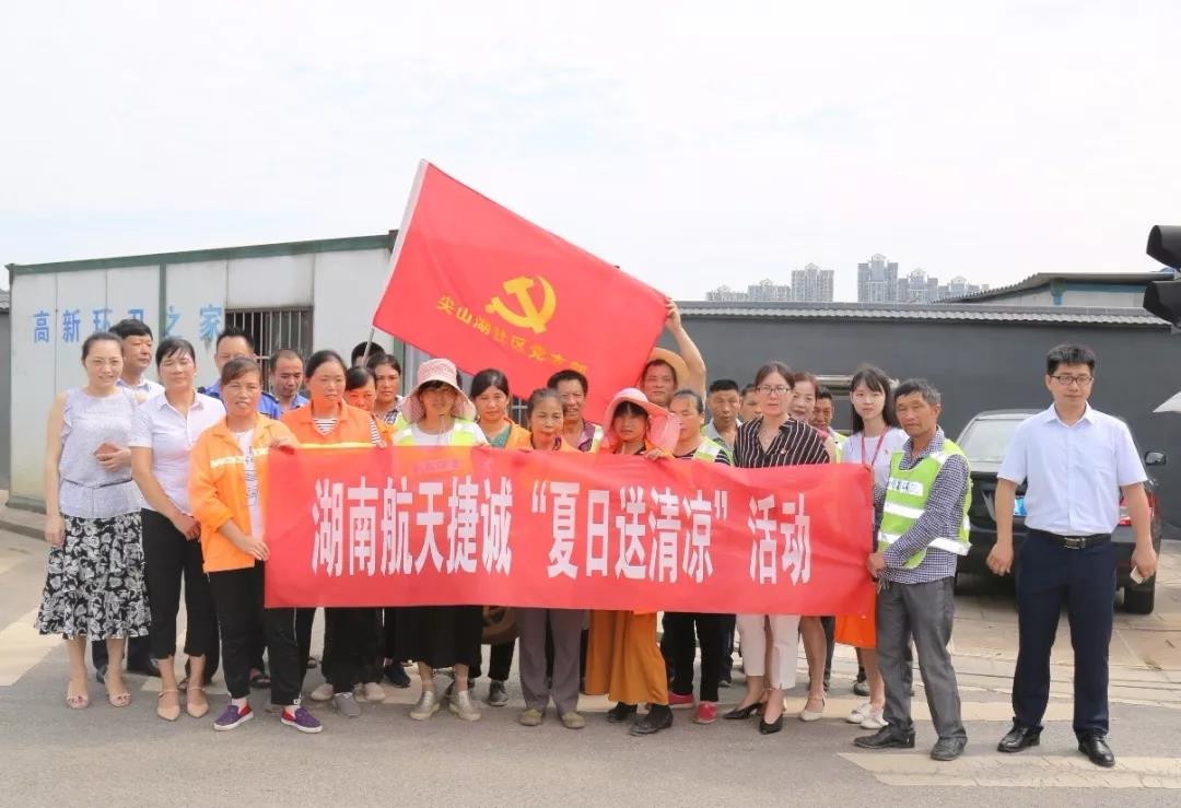 入伏以来,热浪滚滚,而环卫工人们依然顶着酷暑奋战在一线,为创造美丽的“星城”贡献着自己的一份力量。为了给这群辛勤的劳动者们送上一份“清凉”,实现炎炎夏日里的“微心愿”,8月1日,江苏捷诚湖南子公司党支部联合尖山湖社区党支部,来到高新区尖山湖社区的环卫之家进行探望慰问。支部的党员们为环卫工人们送上绿豆、藿香正气水、板蓝根等解暑物资,同时还带去了米和油等生活必需品,提醒工人们在高温天气要做好防暑降温措施,并对他们用辛勤汗水换来的干净整洁的社区面貌表示由衷的感谢。