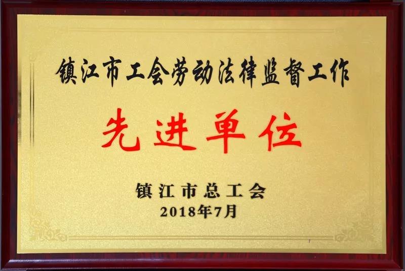 近日,江苏捷诚工会荣获镇江市首批20家工会劳动法律监督工作先进单位称号。