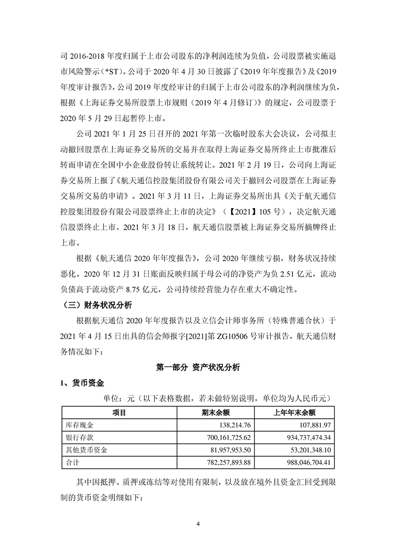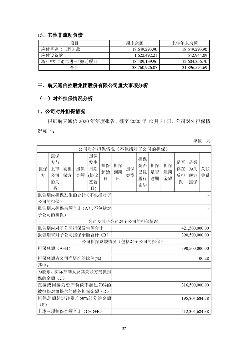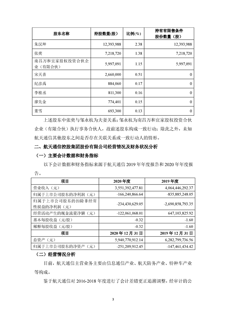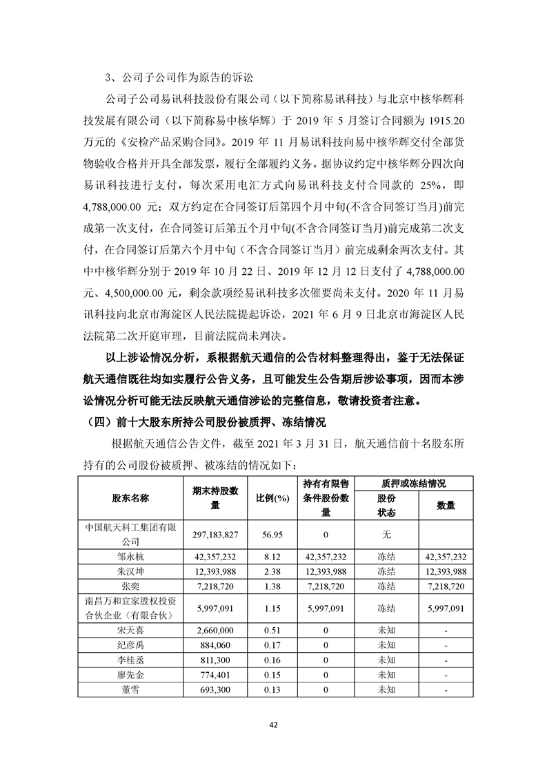 关于航天通信控股集团股份有限公司投资风险分析的报告