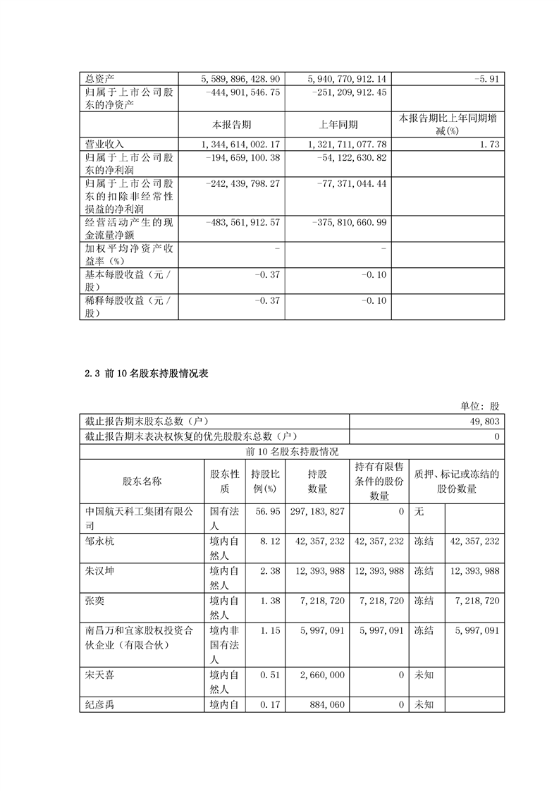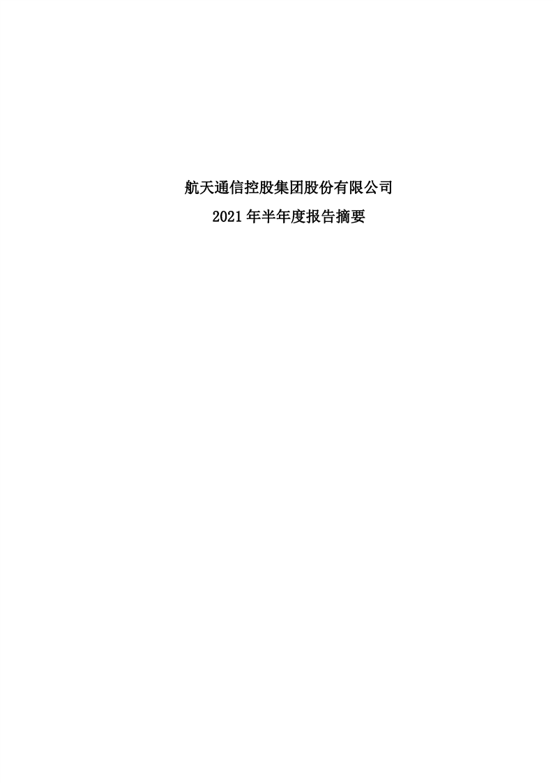 航天通信控股集团股份有限公司2021年半年度报告摘要